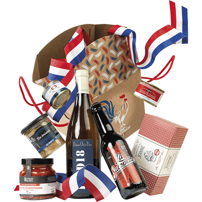 Notre coffret carré kraft carton "100% Cocorico" est idéal pour vos compositions gourmandes.