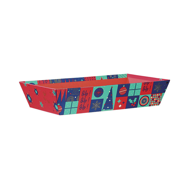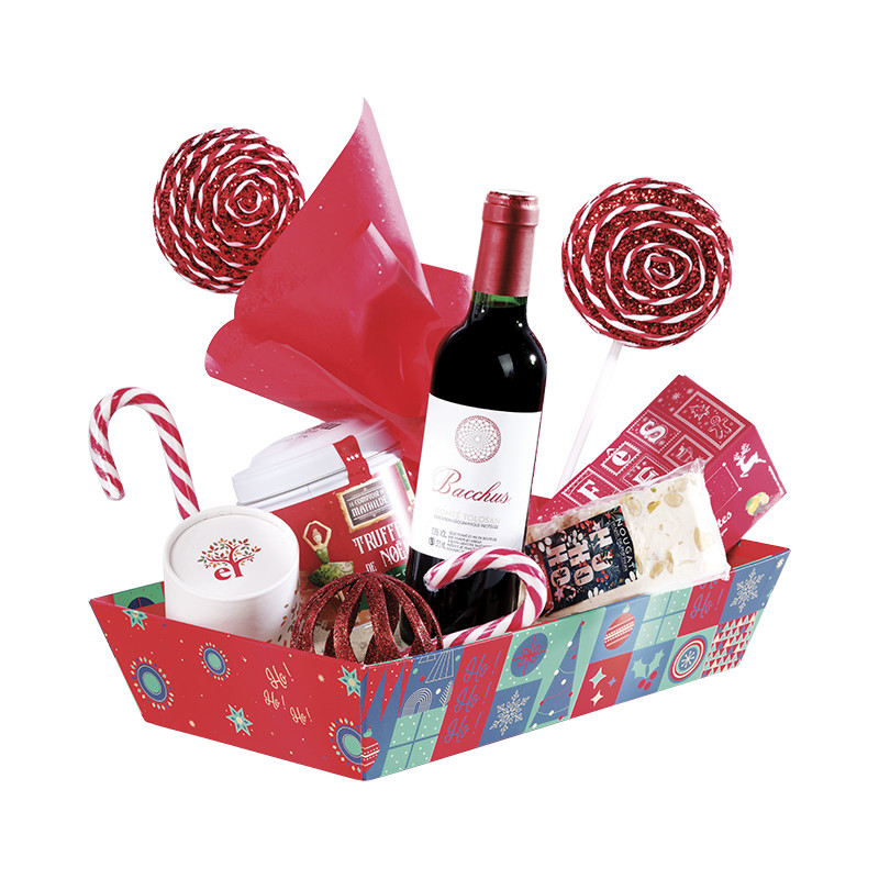 Notre corbeille rectangle "MOSAIQUE FESTIVE" est idéale pour vos compositions gourmandes.