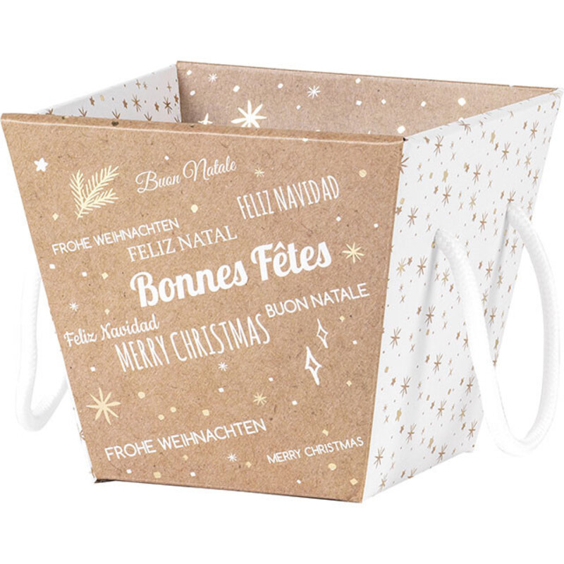 Notre corbeille carton carrée “bonnes fêtes” est idéale pour vos compositions de fin d’année.