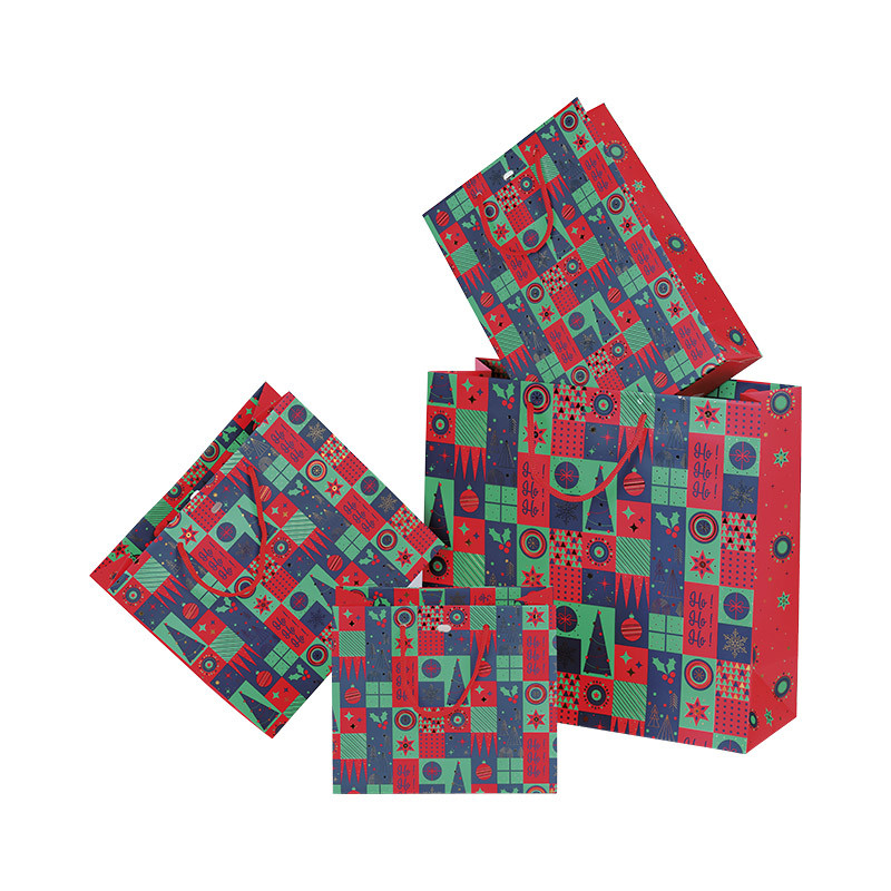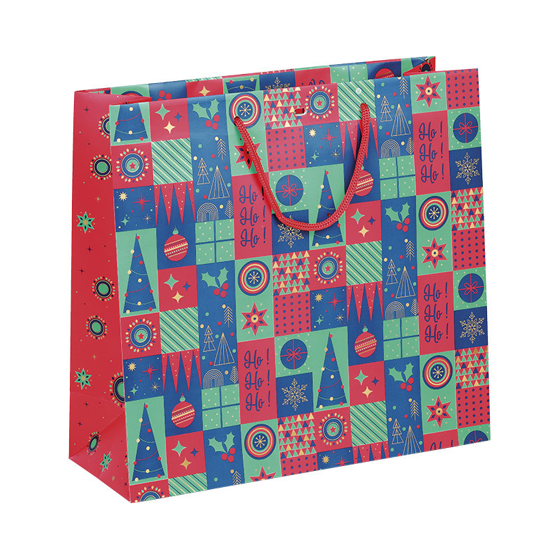 Sac papier MOSAIQUE FESTIVE vert/rouge/or...